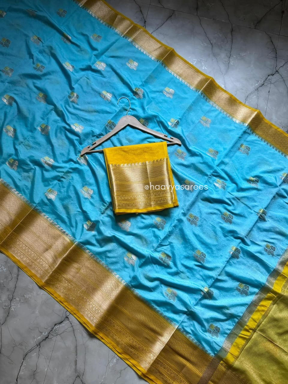 • Inclusions: Saree (5.5m) + Unstitched Brocade Blouse (0.8m)