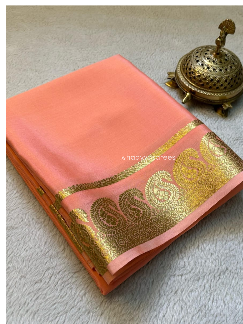 Superior Substance: With a 120 GSM weight, this saree offers the iconic “fall” and fluidity that Mysore Silk is famous for, ensuring it holds its shape beautifully throughout weddings and festive events.